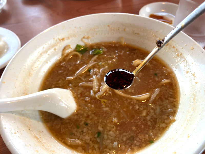 ラーメンにもラー油入れて、味変しながら食べるのがぶたさん流!