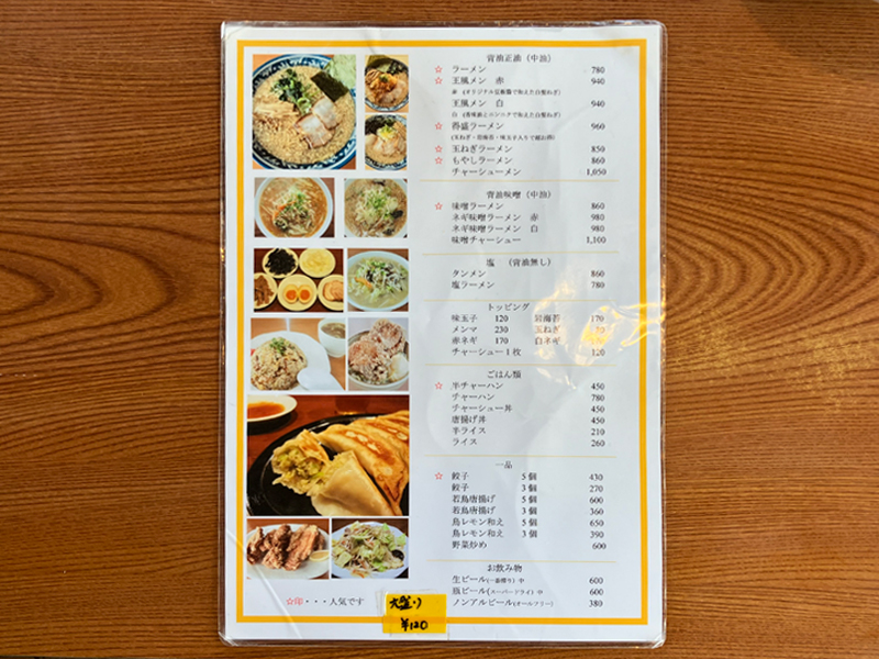 - 玉ねぎラーメン大盛970円