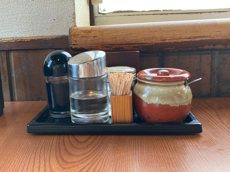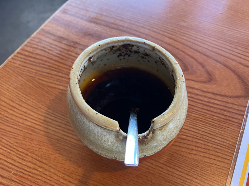 テーブルには餃子用のラー油がいっぺことあるんてー。