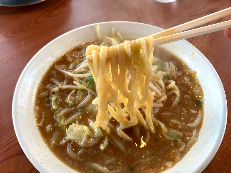 麺は全粒粉みとな少し茶色みがかった太麺られー。