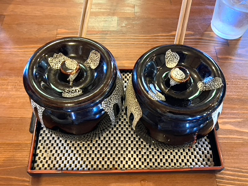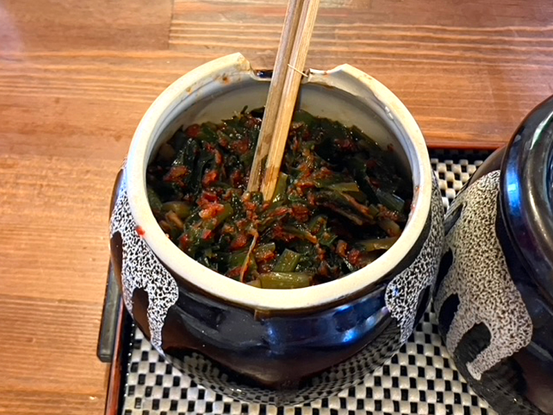 ニラなんばんラーメンを注文すっとすぐ、なにやら壺が2つくるれー。