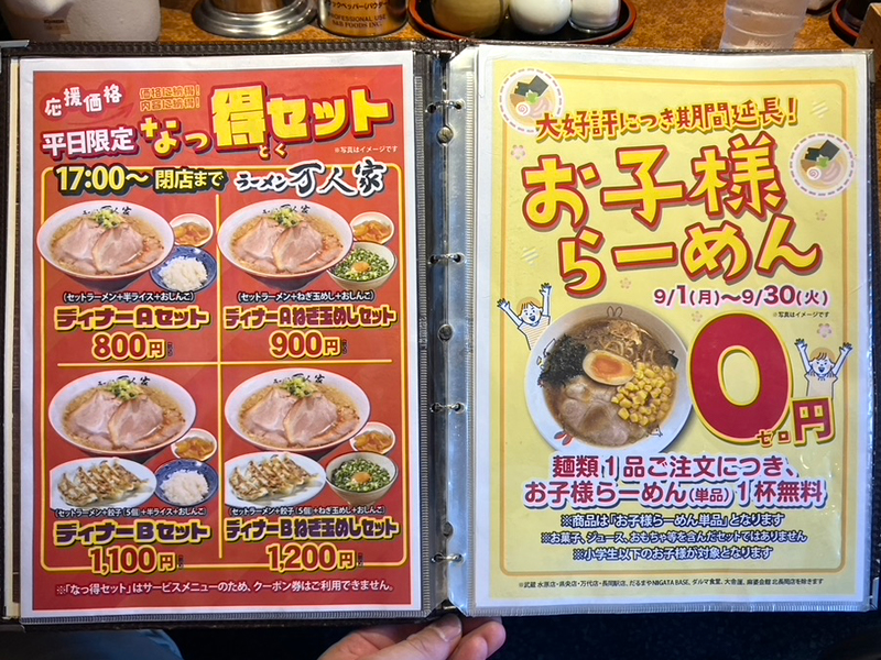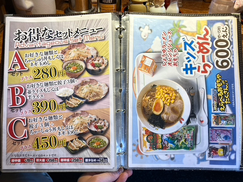 - Bセット 麺類+餃子3個+並ライスもしくは半ライス390円