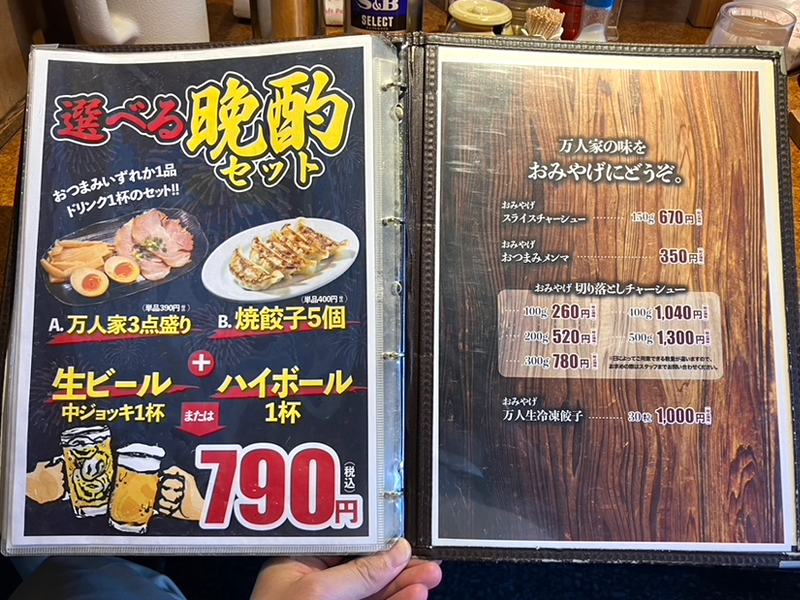 - A.万人家3点盛り+生ビールまたはハイボール790円