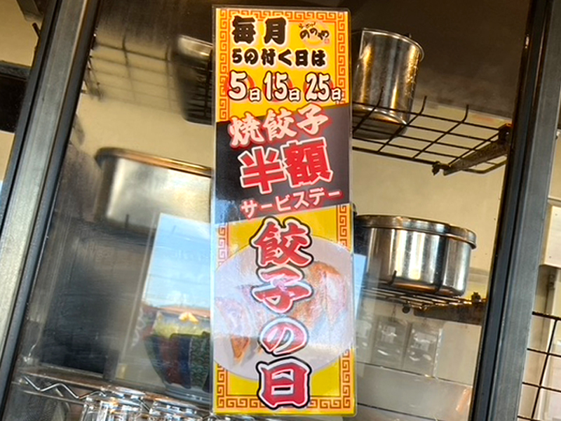 毎月5が付く5日、15日、25日は焼餃子が半額らって!