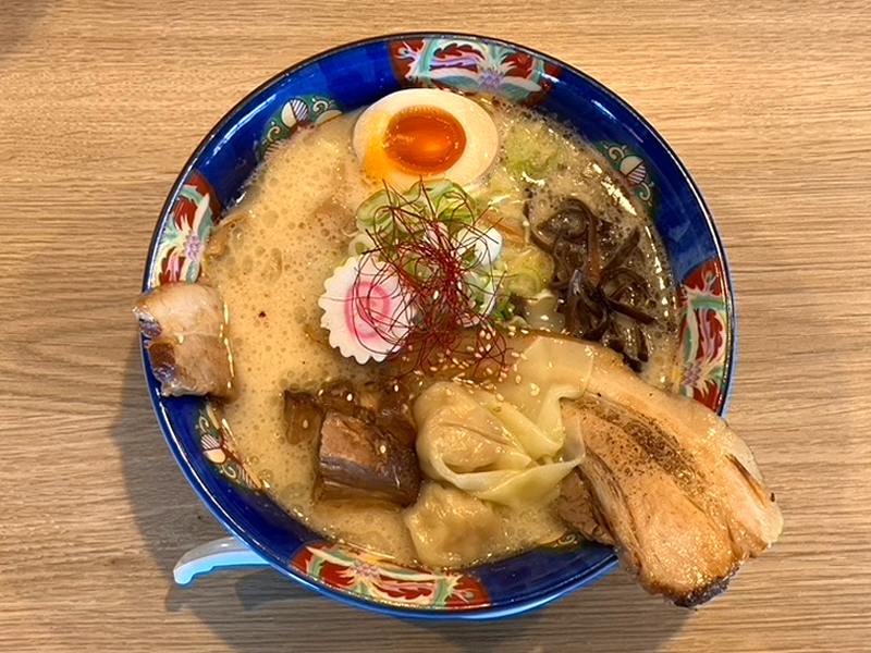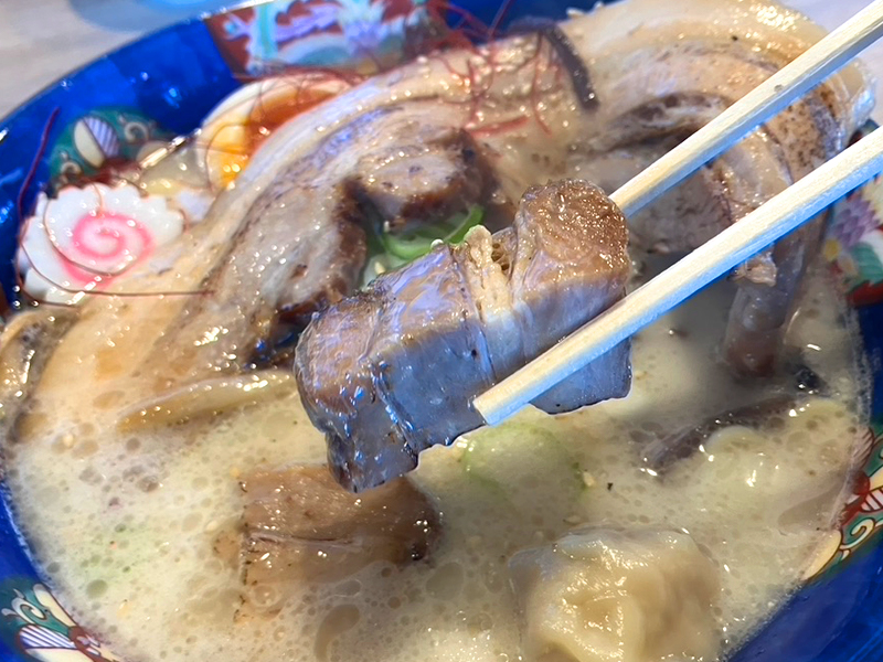 チャーシュー、角煮、ワンタン、メンマ、煮卵、きくらげ、なると、長ネギ、糸唐辛子が乗ってるれー。