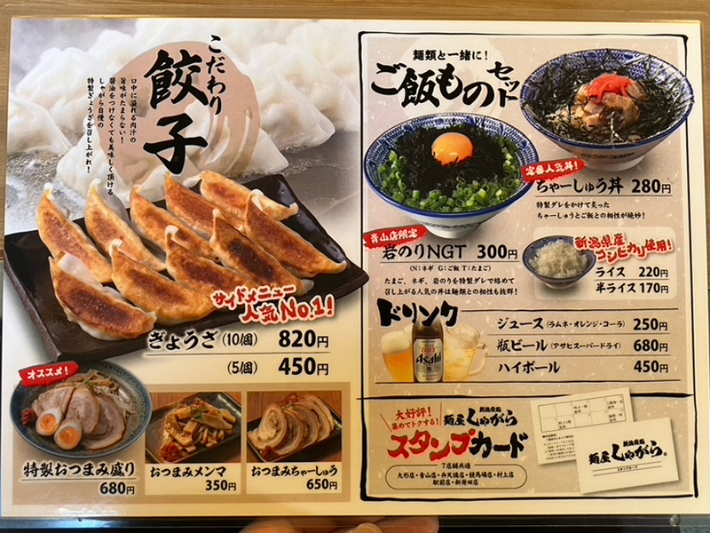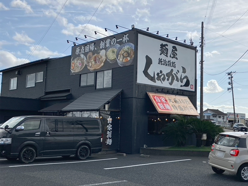 麺屋しゃがら青山店は県道42号新潟黒崎インター線沿い、イオン青山店を背に黒崎インターに向こて走っと、左側にあるれー。