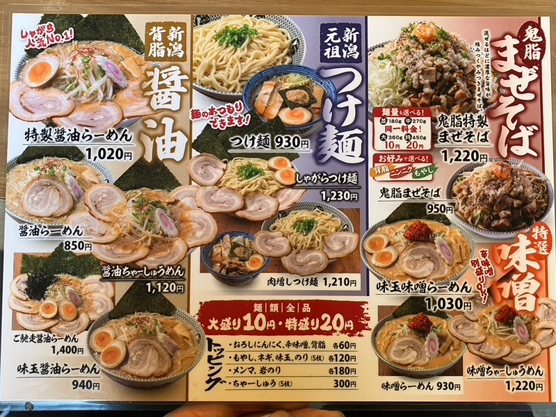 • 背脂60円