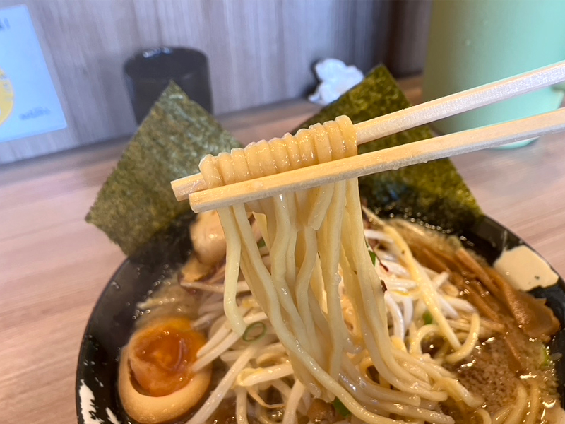 ちょっとしょっぱめでこってりのスープに負けねー、コシのしっかりした麵られー。