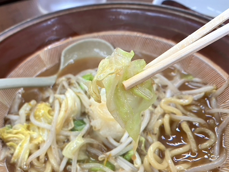味噌ラーメンにはキャベツともやしの茹で野菜が乗ってるれー。