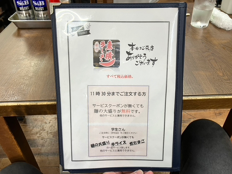 11時30分までに注文すれば、麺の大盛りが無料られー。