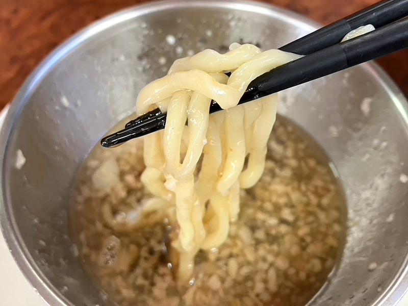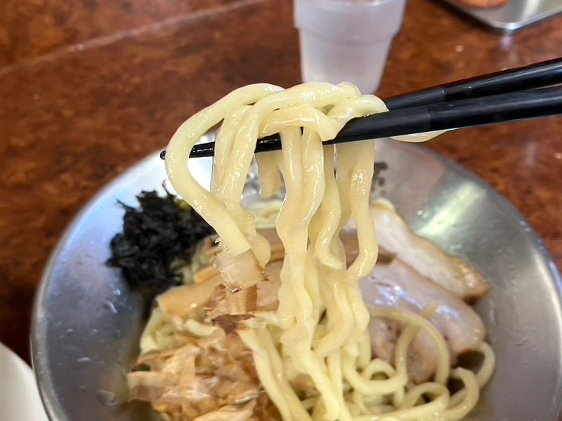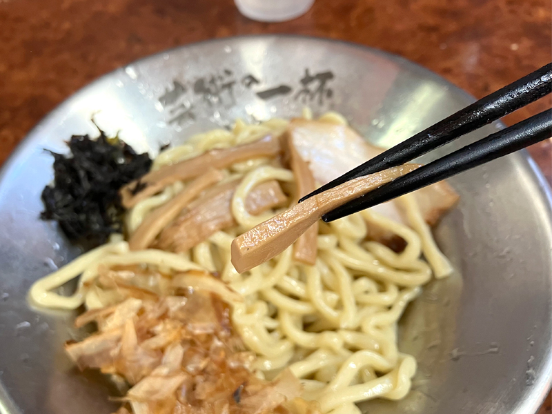 つけ汁につけると背脂が絡みついて美味いんてー。