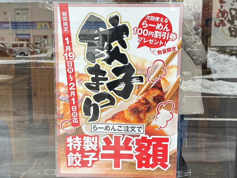 ちゃっかり餃子も半額らっけ頼んでみたてー。