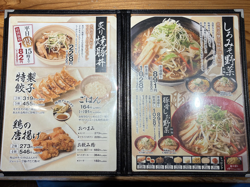 辛みそ野菜1,080円、餃子5個250円で1,330円(税込)られー。